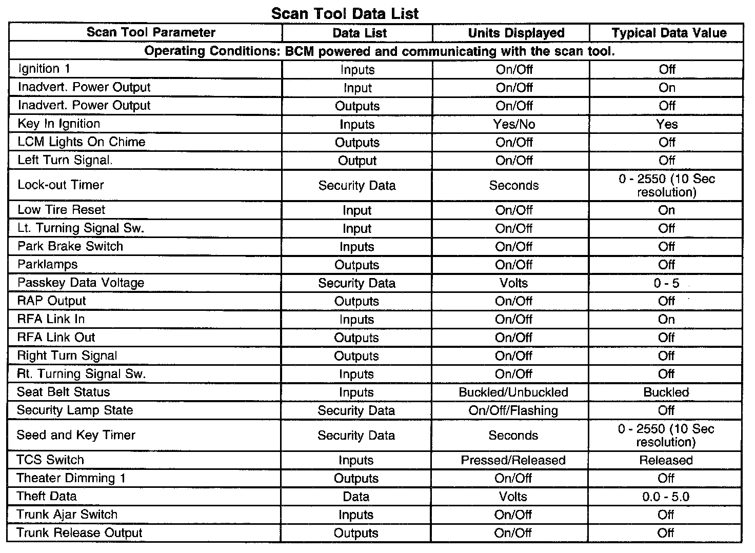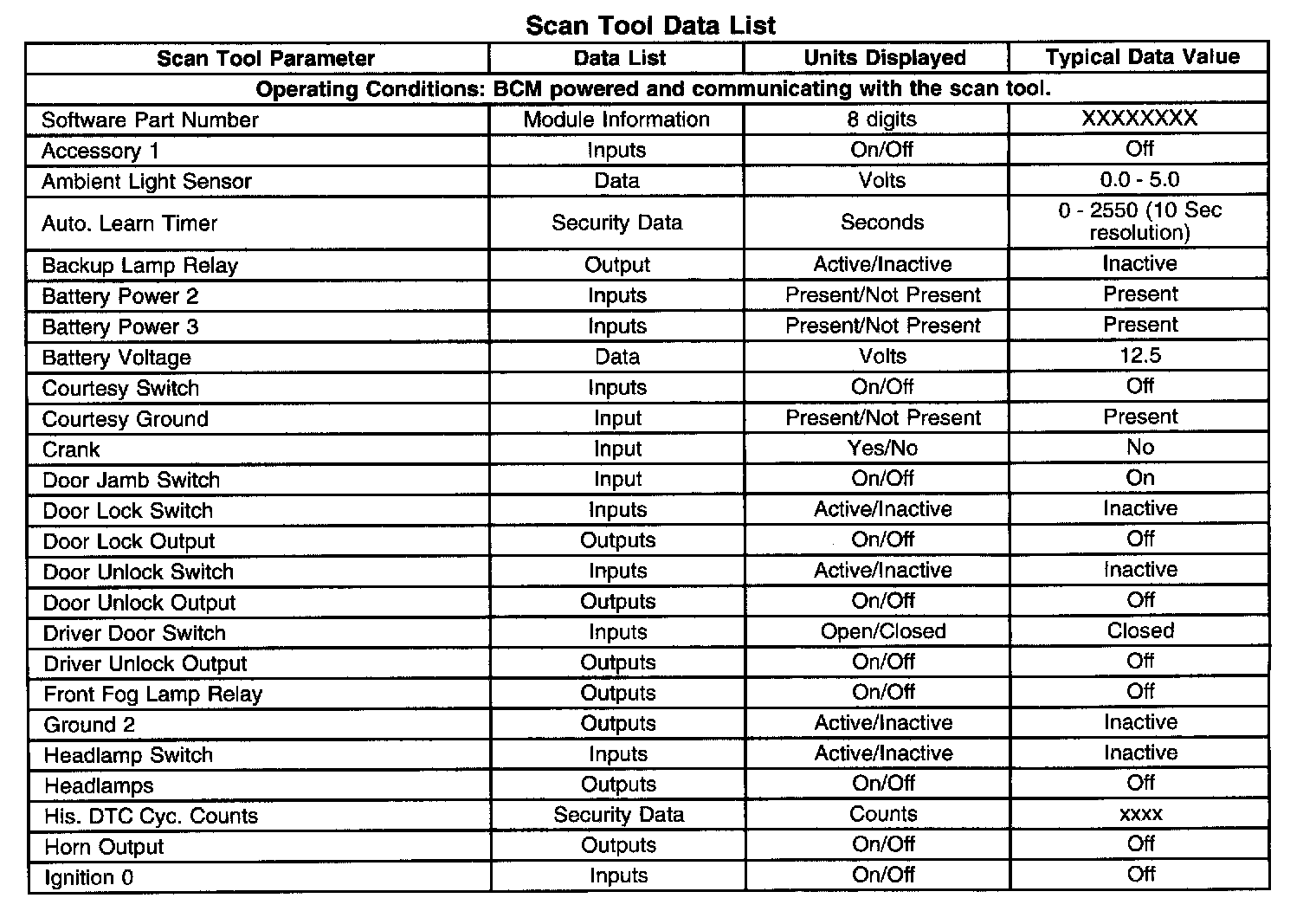 Scan Tool Data List