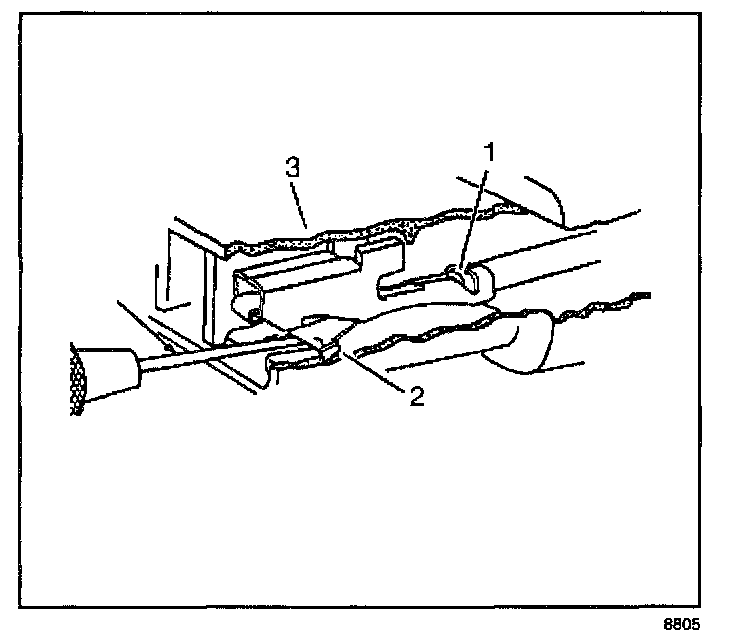 6. Reform the locking tang (2) if the terminal is being reused.