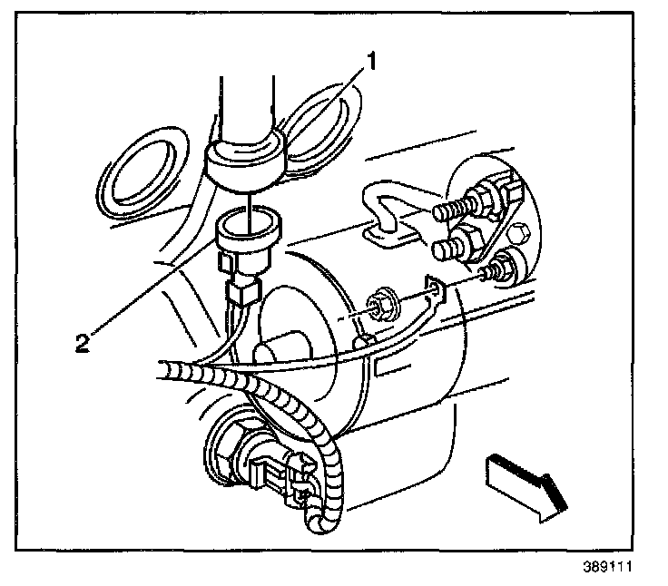 1. Install the knock sensor (2) into the engine block (1).
