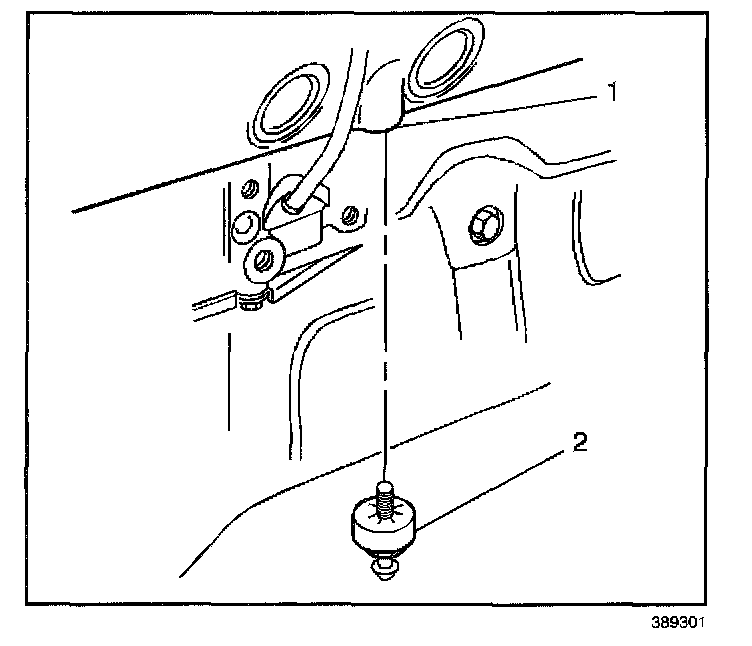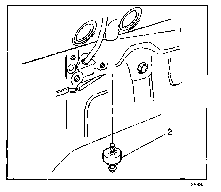 5. Remove the knock sensor (2) from the engine block (1).