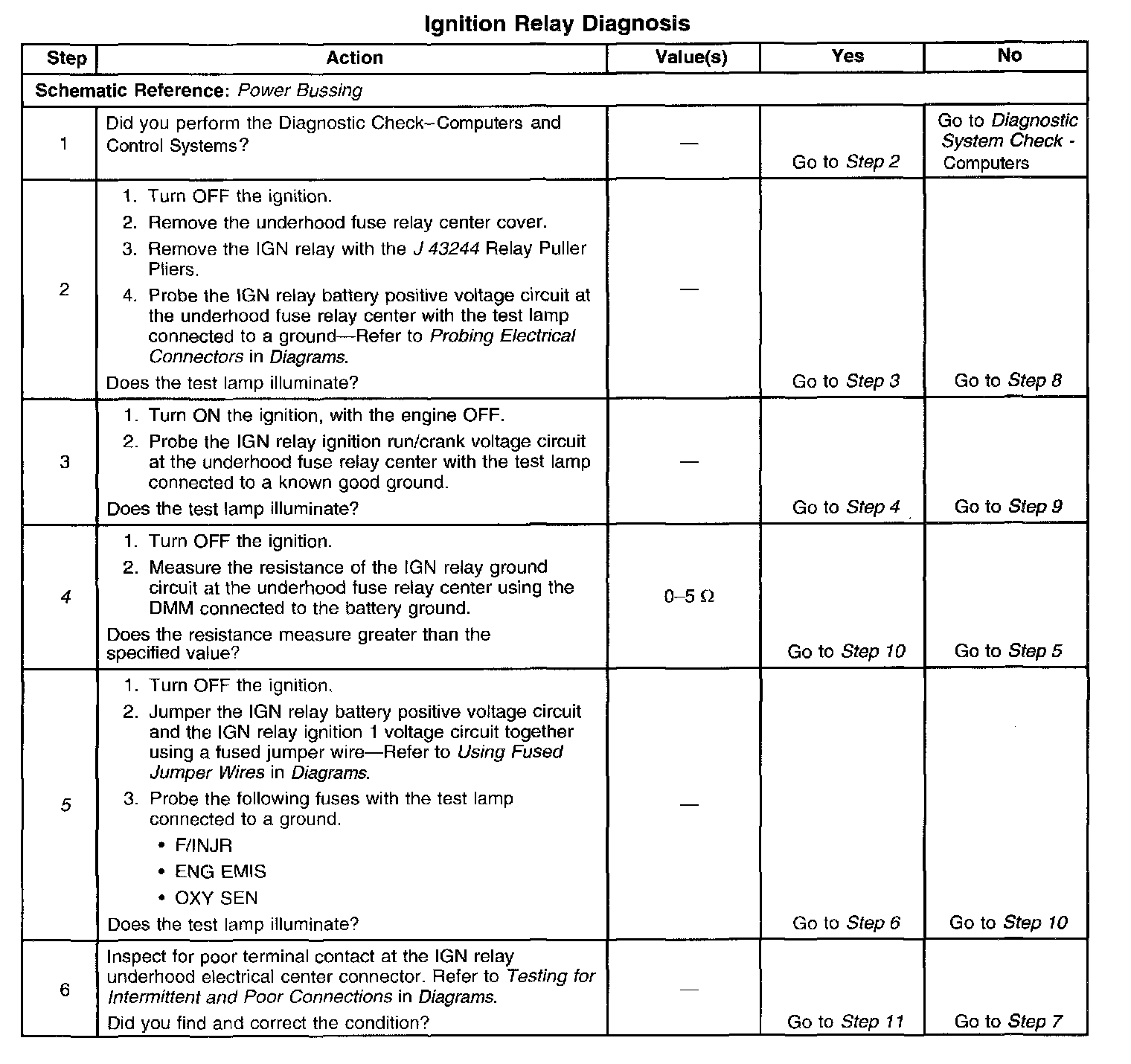 5. This step isolates the circuit from the IGN relay. All of the circuits at the relay are good if the test lamp illuminates.