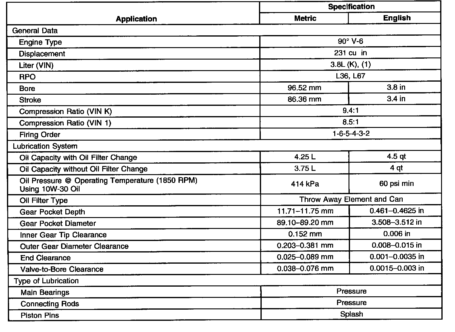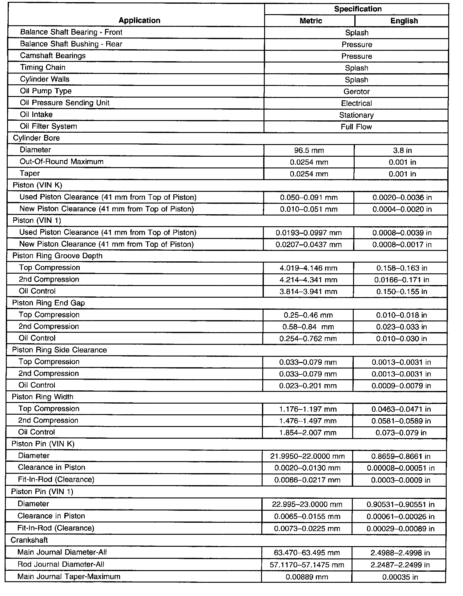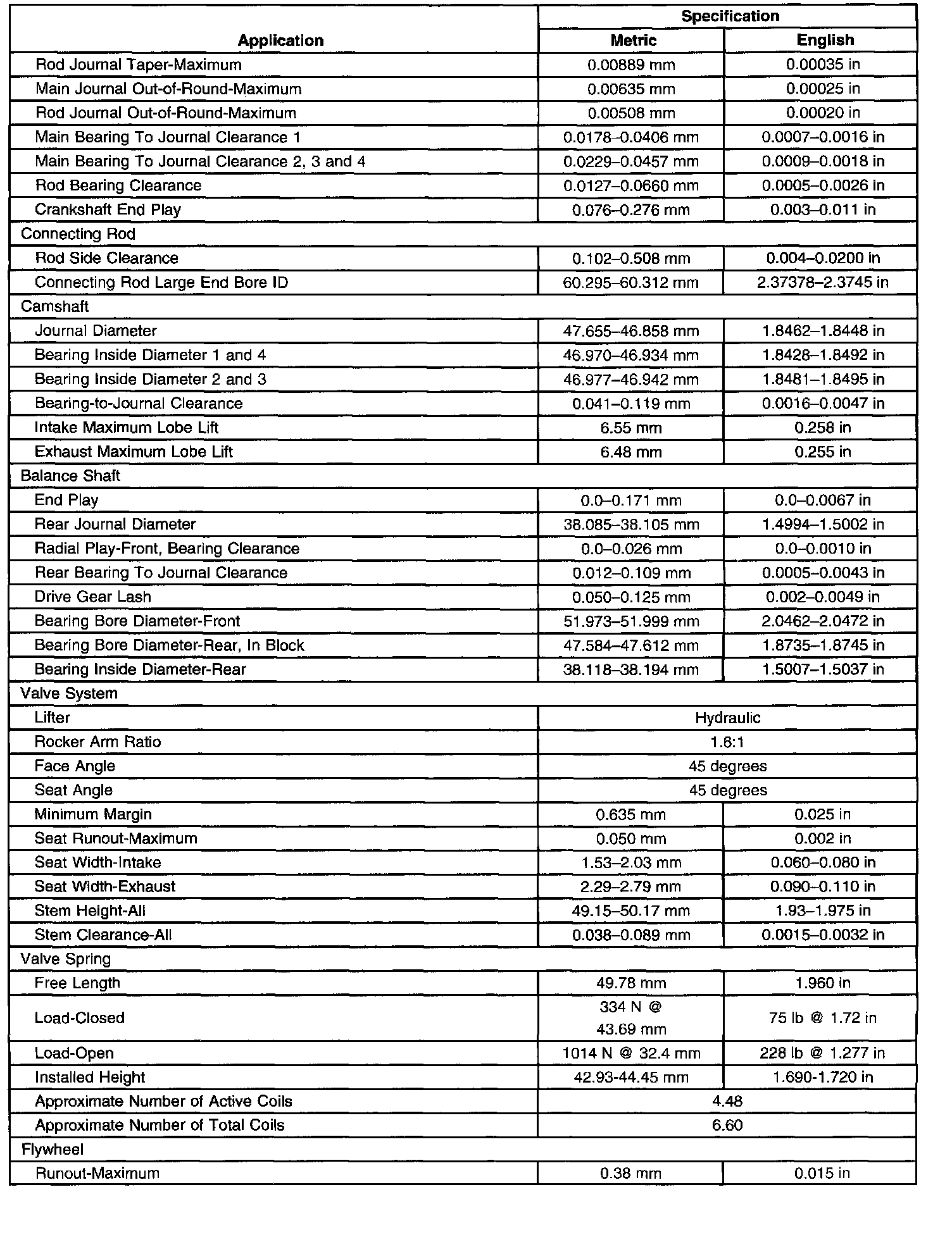 Engine Mechanical Specifications