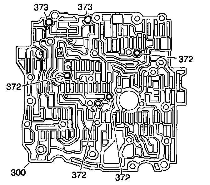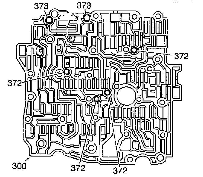 3. Install the ball check valves (372 and 373) into the valve body. Use the J 36850 to retain the ball check valves in their proper locations.