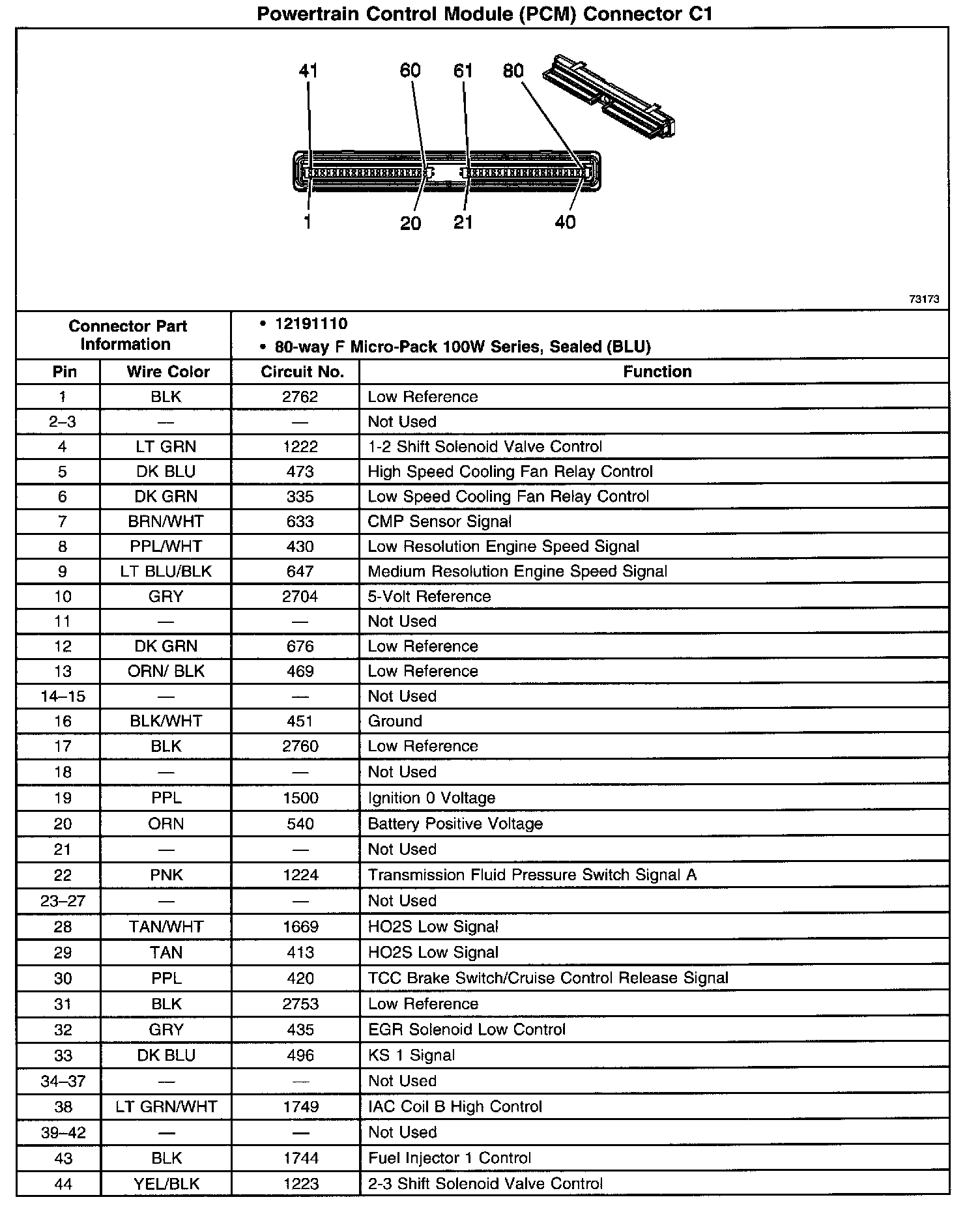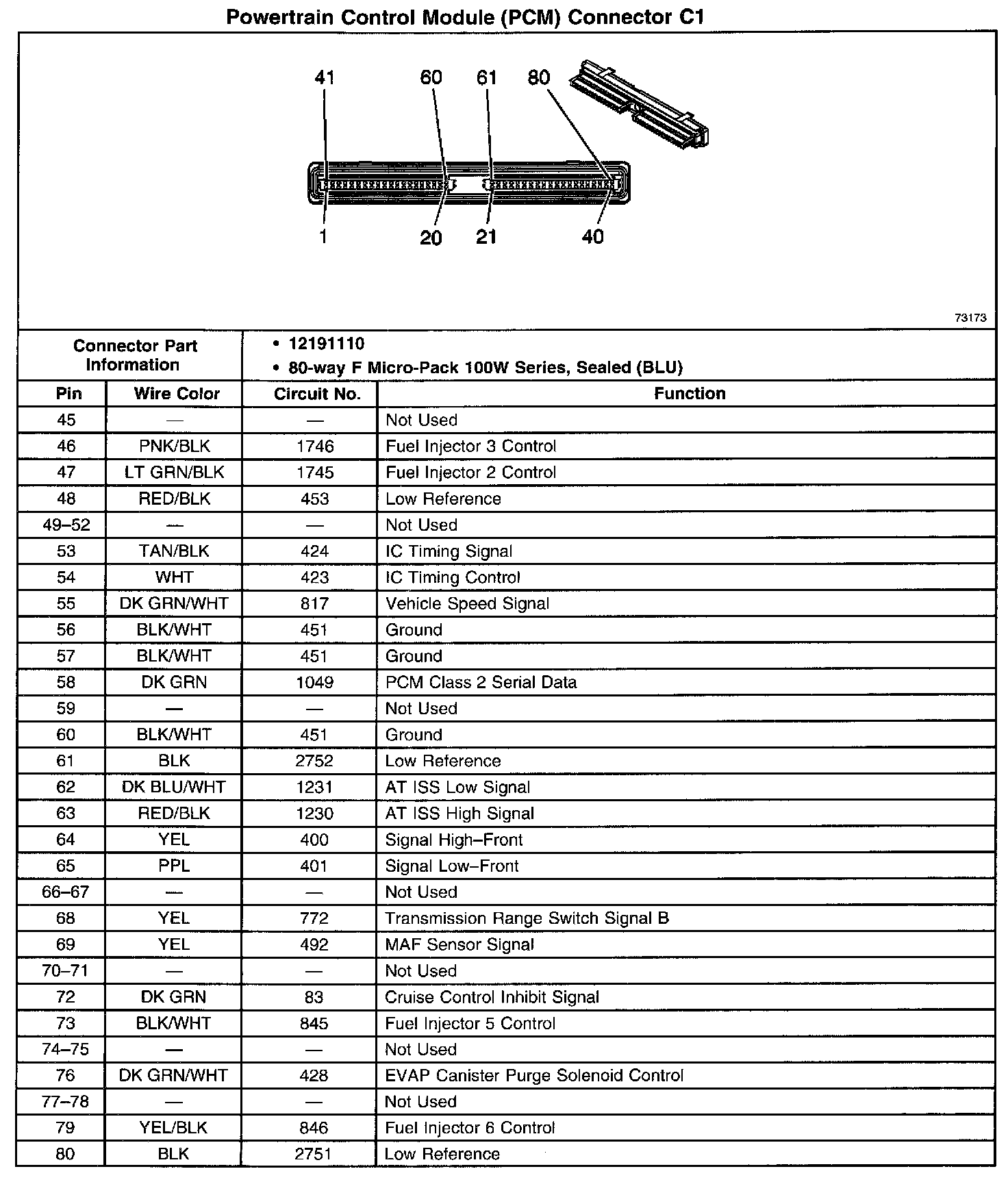 Powertrain Control Module (PCM) Connector C1 Part 2: