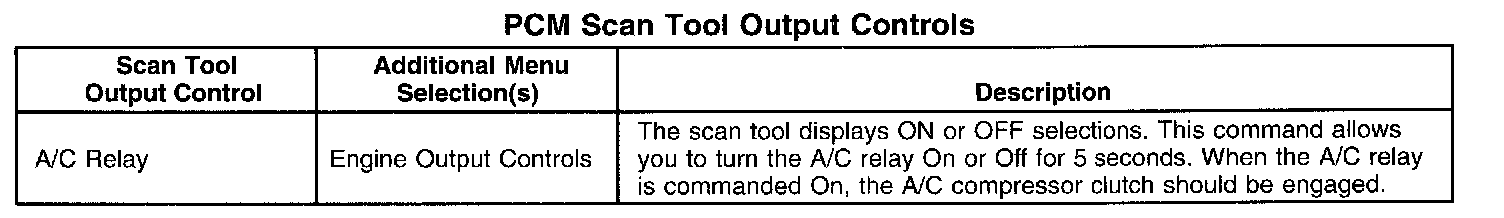 Scan Tool Output Controls - Powertrain Control Module (PCM)