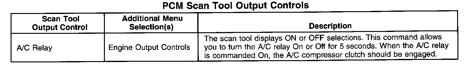Scan Tool Output Controls - Powertrain Control Module (PCM)