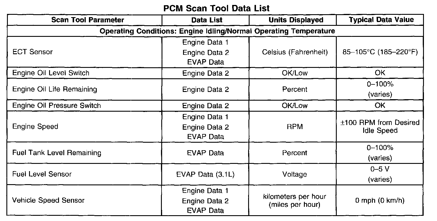 PCM Scan Tool Data List: