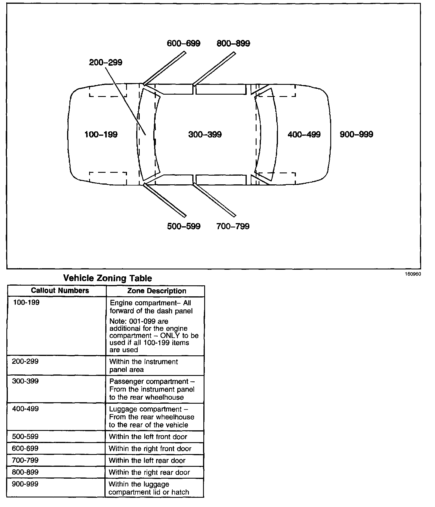 All grounds, in-line connectors, pass-through grommets, and splices have identifying numbers that correspond to where they are located in the vehicle.