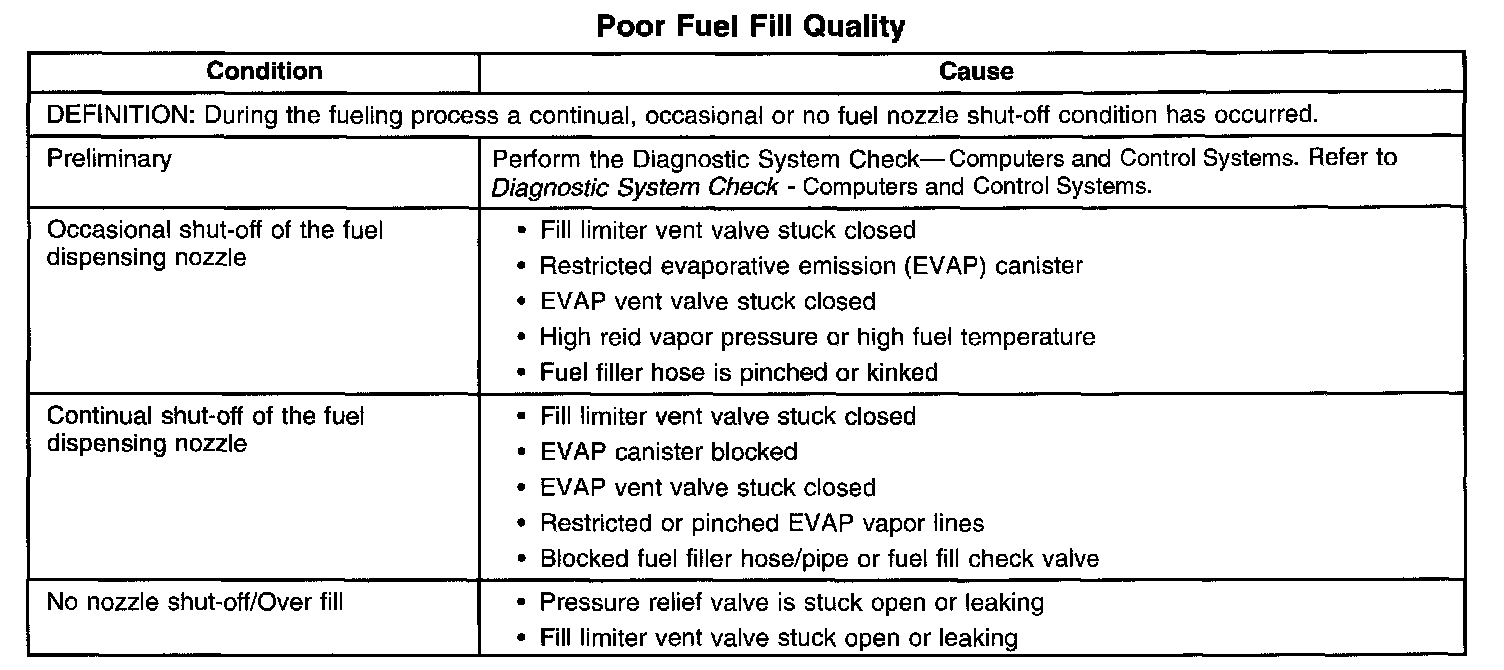 Poor Fuel Fill Quality