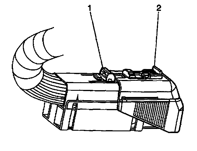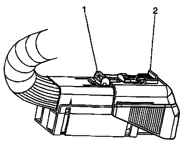 4. Push down lock tab (1) and then move sliding connector cover (2) back in the home position to lock.