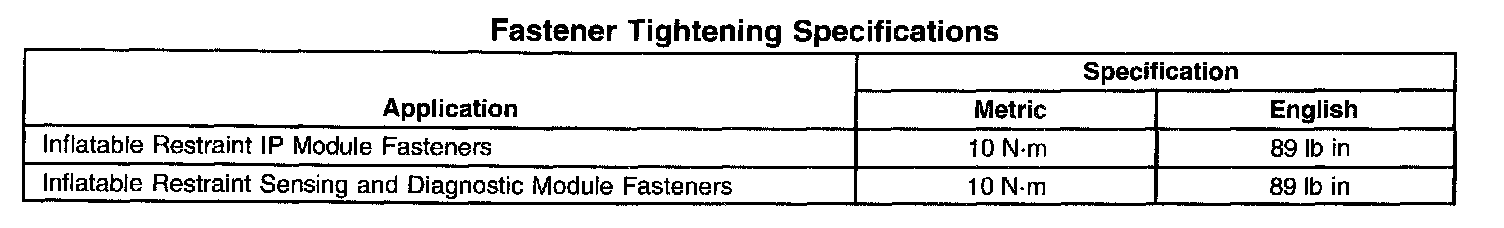 Fastener Tightening Specifications: