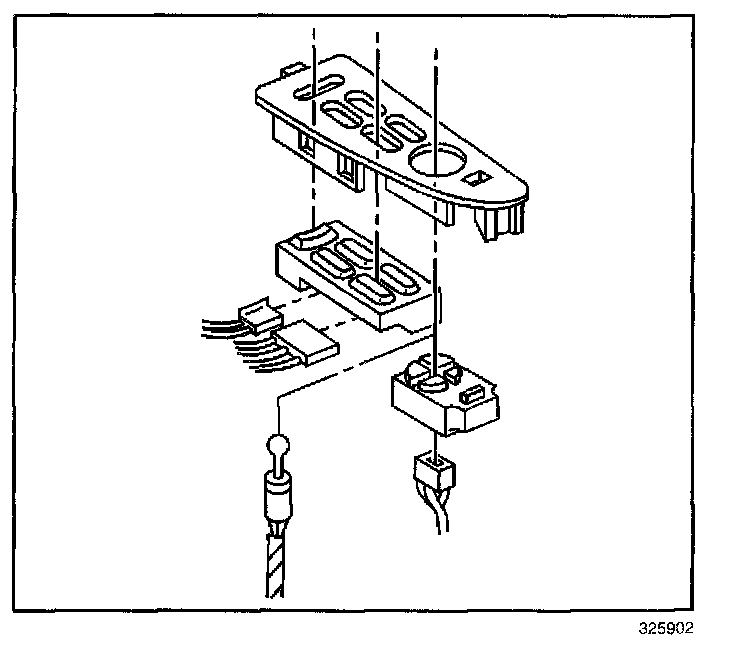^ When removing a door trim panel or switch plate, the ignition switch must be in the OFF position. This will eliminate the possibility of shorting out the switch if a flat-bladed tool, awl or metal object is used to remove the switch from the harness.
