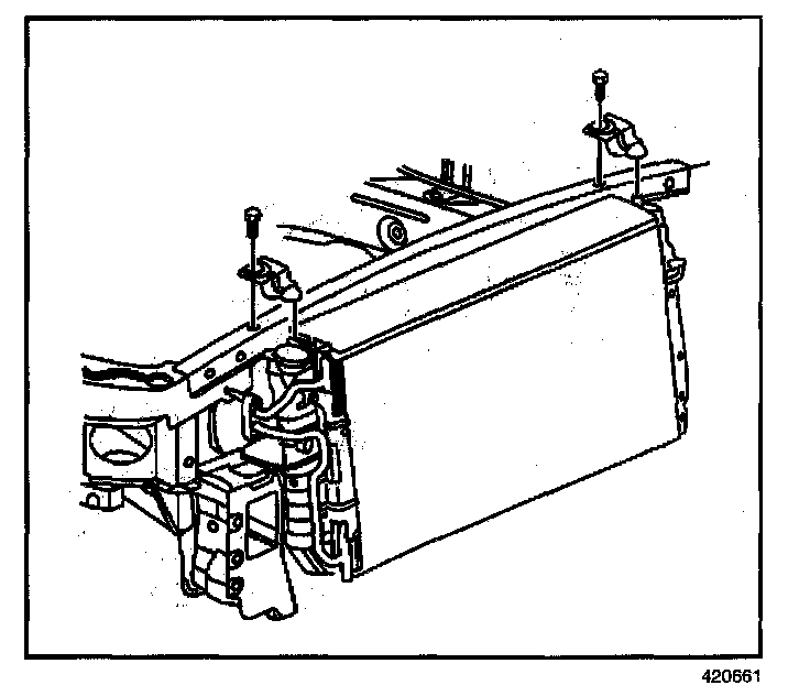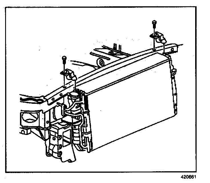 5. Remove the upper radiator mounting brackets.