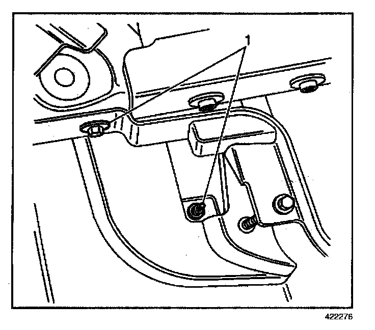 7. Reposition the headlamp and bumper fascia mounting panel and install the fasteners (1).