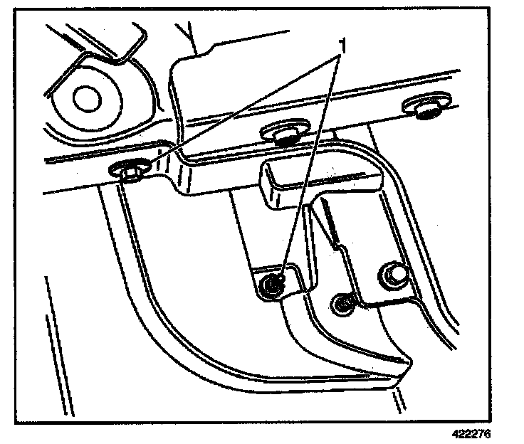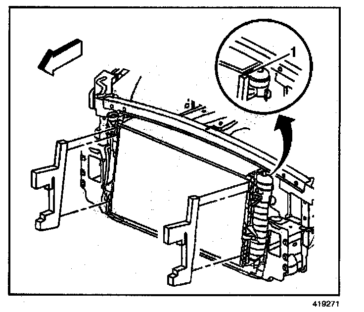 9. Remove the fasteners (1) from the left and right sides of the headlamp and bumper fascia mounting panel.