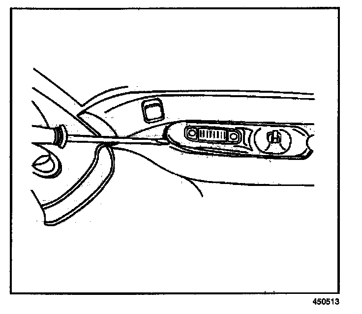 REMOVAL PROCEDURE1. Remove the passenger window switch plate by prying up on the forward edge with a flat blade tool.