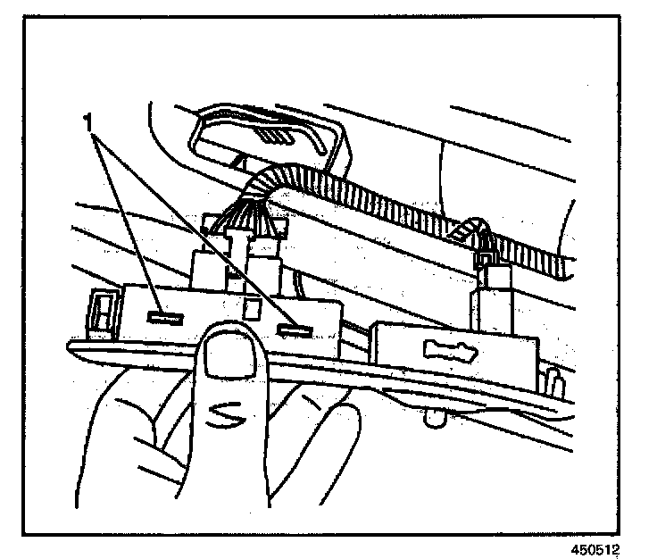 1. Install the passenger temperature control ensuring the tabs (1) are seated into the switch plate.