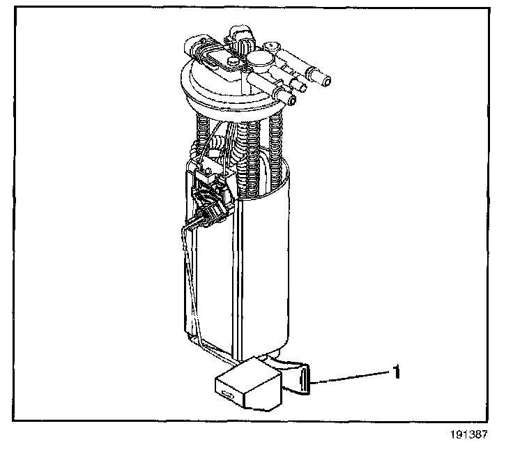 1. Note the position of the fuel pump strainer (1) for installation.