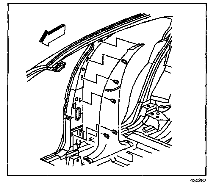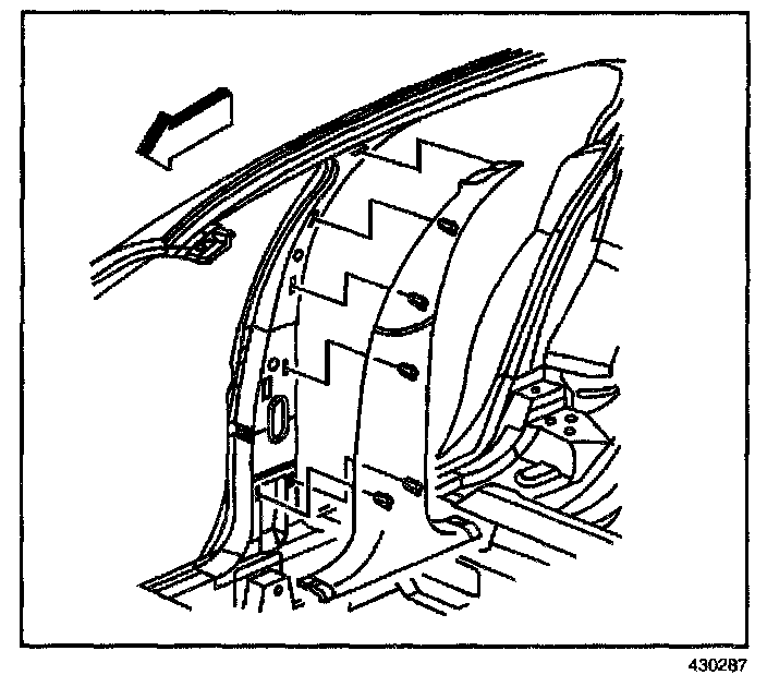 IMPORTANT: Release the passenger side center pillar trim garnish molding upper retainer.