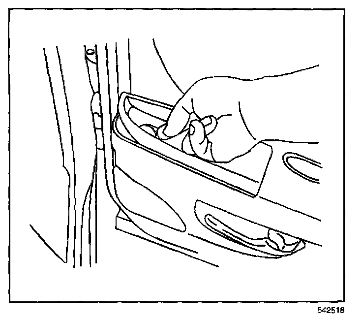 3. Insert the tabs at the rearward end of the switch plate under the door trim panel.