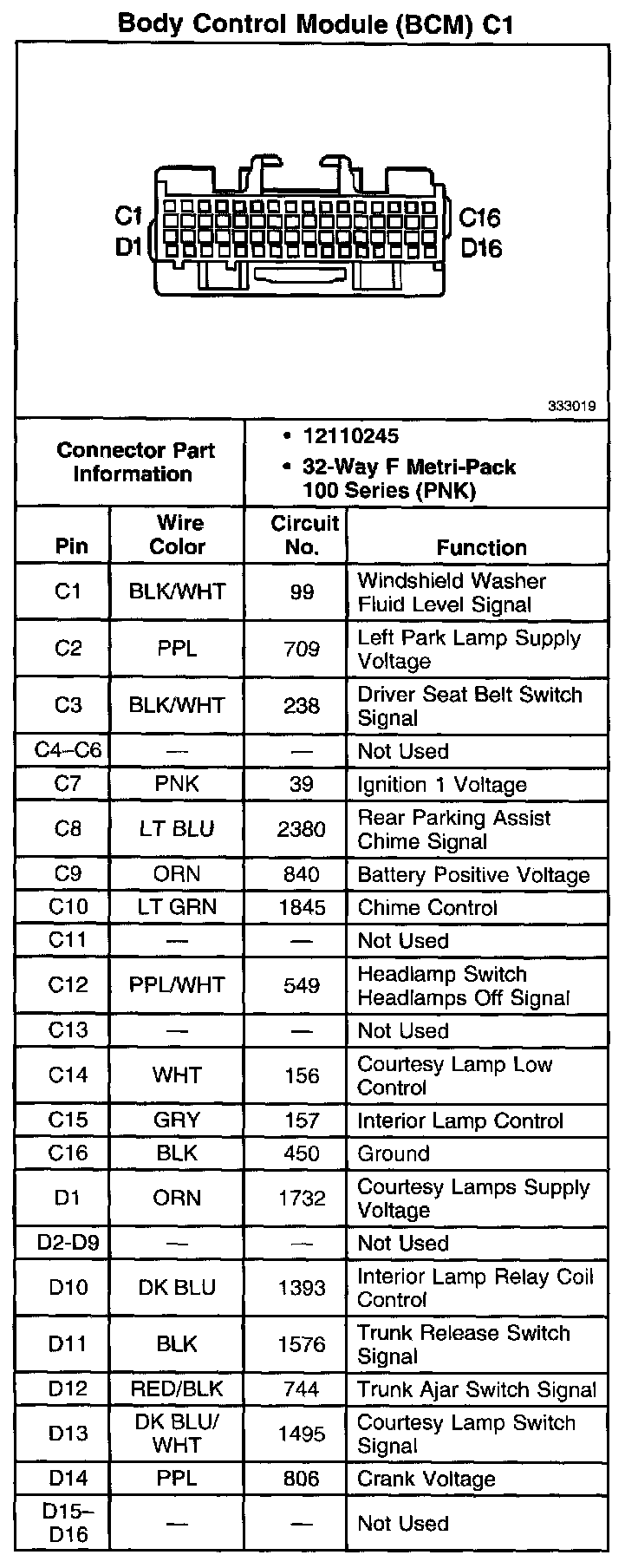 Body Control Module (BCM) C1: