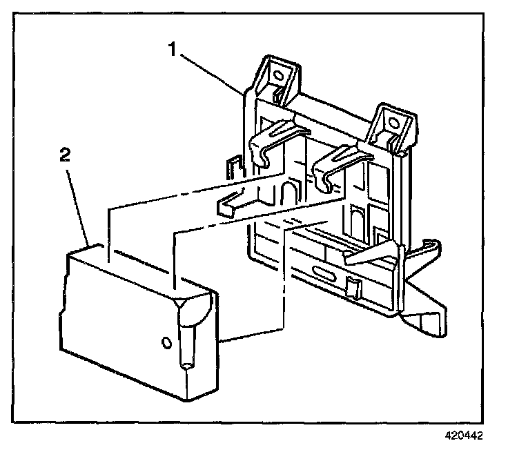 2. Install the module to the mounting bracket (1). Slide the module upward and slightly rearward until locking tabs engage.