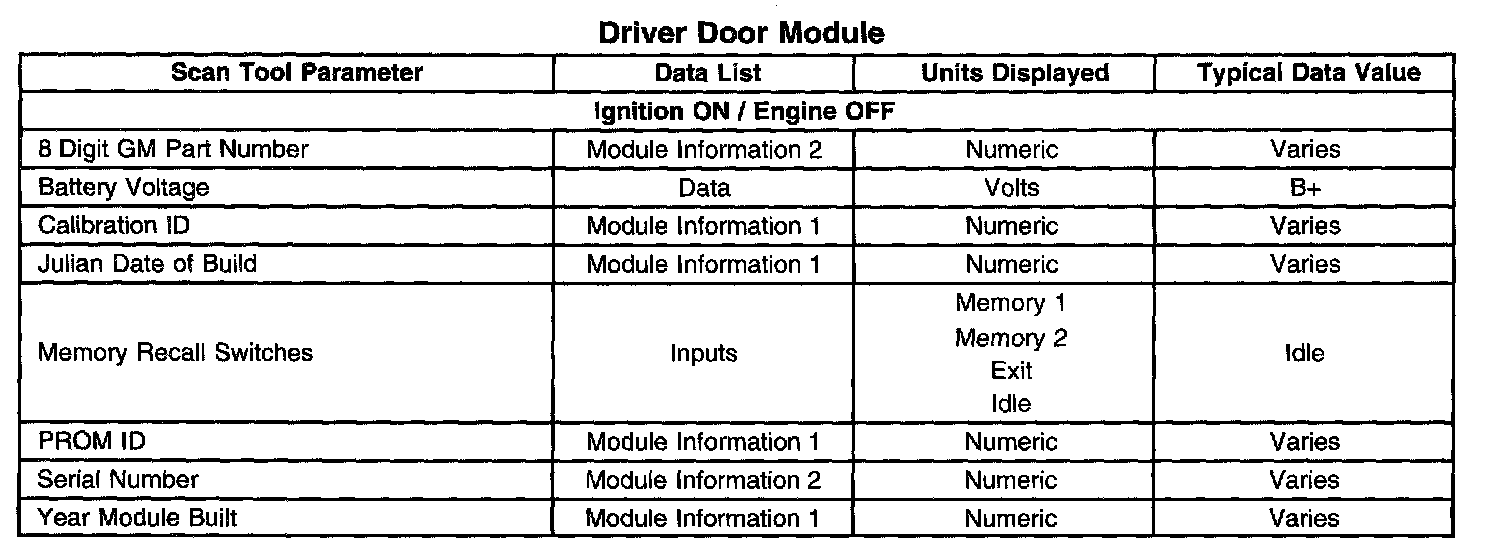 Driver Door Module: