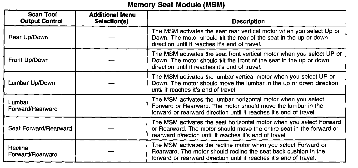 Scan Tool Output Controls - Memory Seat Module (MSM)