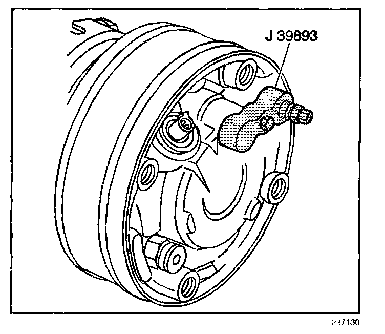 1. With the sealing washers in place, install the J 39893 on the rear head of the compressor.