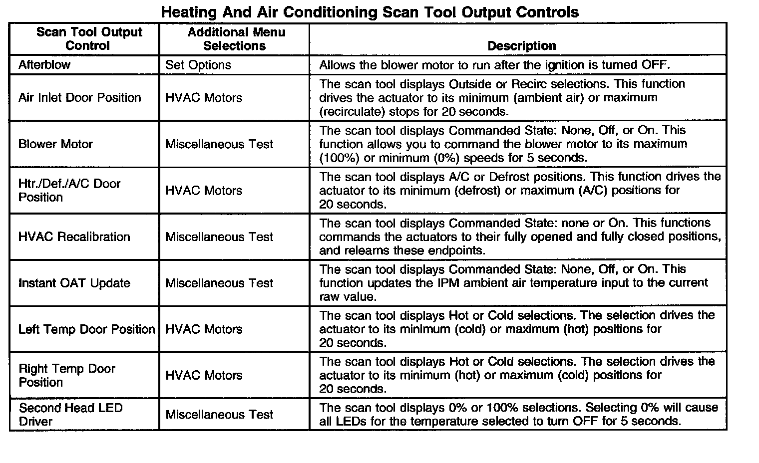 Heating And Air Conditioning Scan Tool Output Controls: