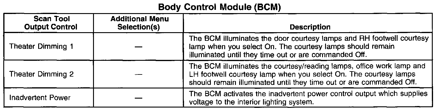 Scan Tool Output Controls - Body Control Module (BCM)