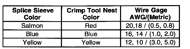 5. Select the proper splice sleeve (2) and the required crimp nest tool, refer to the Crimp and Seal Splice Table.