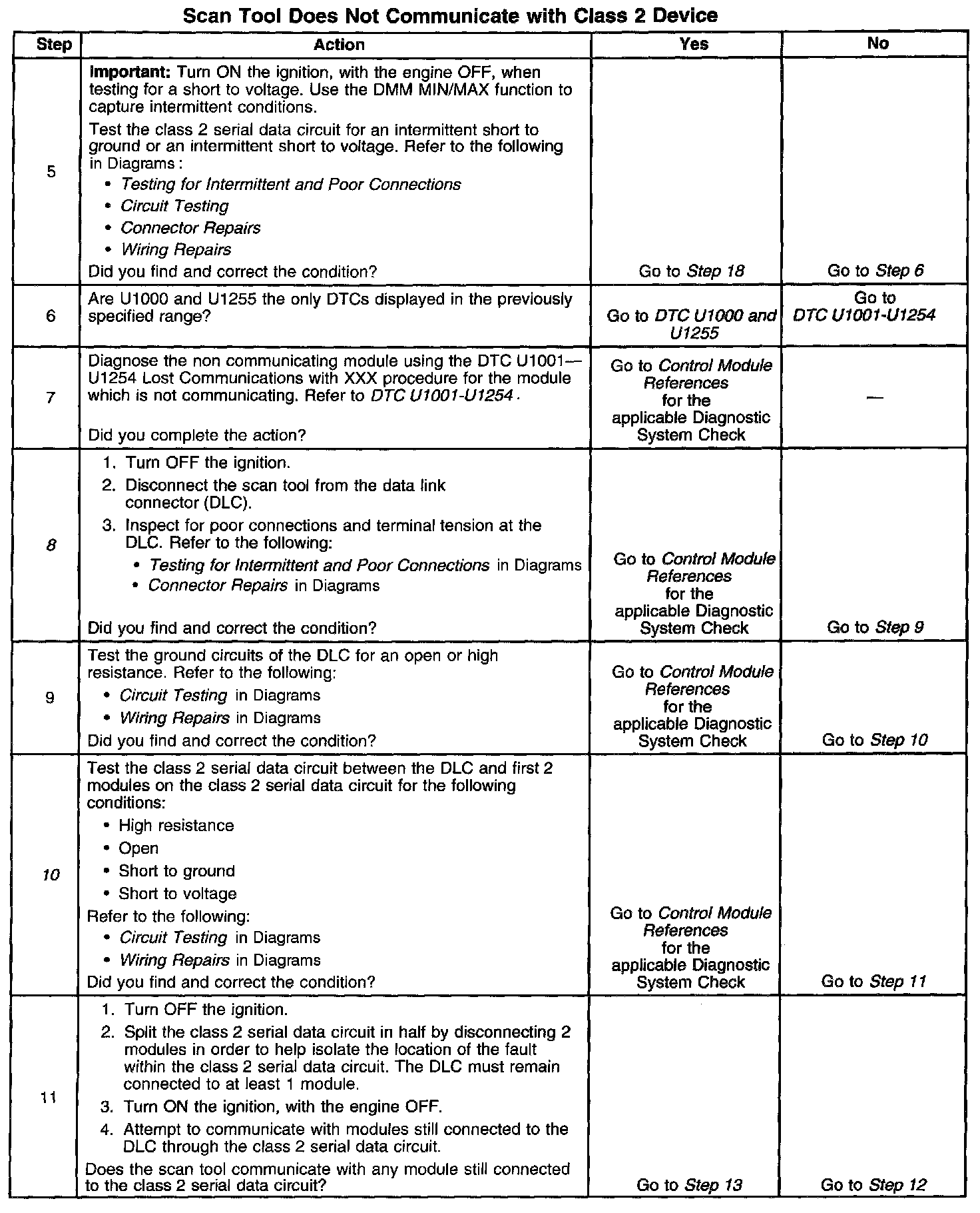 12. An open between the DLC and the class 2 serial data circuit will prevent the scan tool from communicating with any module. This condition will not set a DTC.