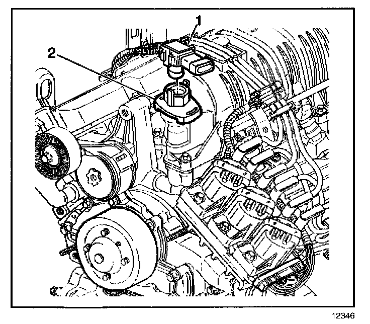2. Position and install the MAP sensor (1) to the PCV valve cover (2). Ensure that the locking tabs engage to hold the MAP sensor to the PCV valve cover.