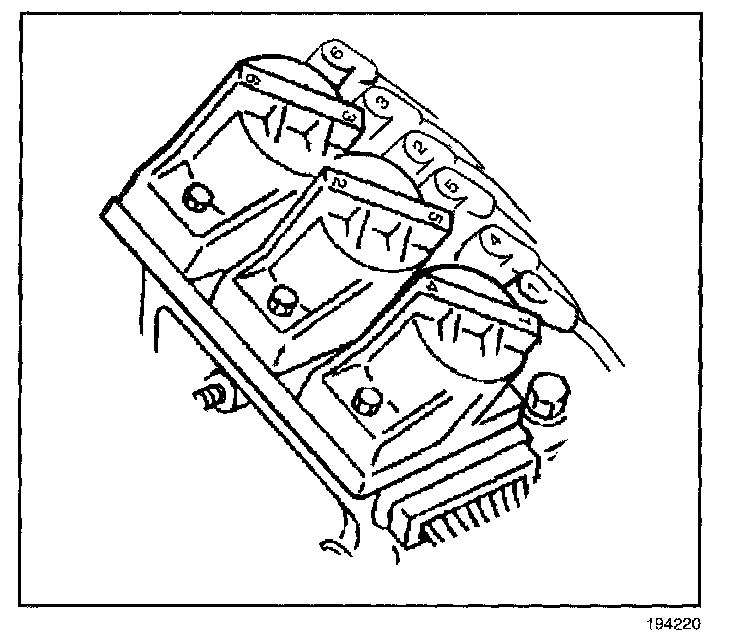 3. Remove the spark plug wires (2, 4, 6) from the spark plugs at the rear of the engine using the following steps: