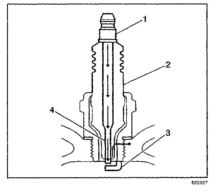 - Inspect for the correct spark plug torque. Refer to Ignition System Specifications. Insufficient torque can prevent correct spark plug operation. An over torqued spark plug, causes the insulator (2) to crack.