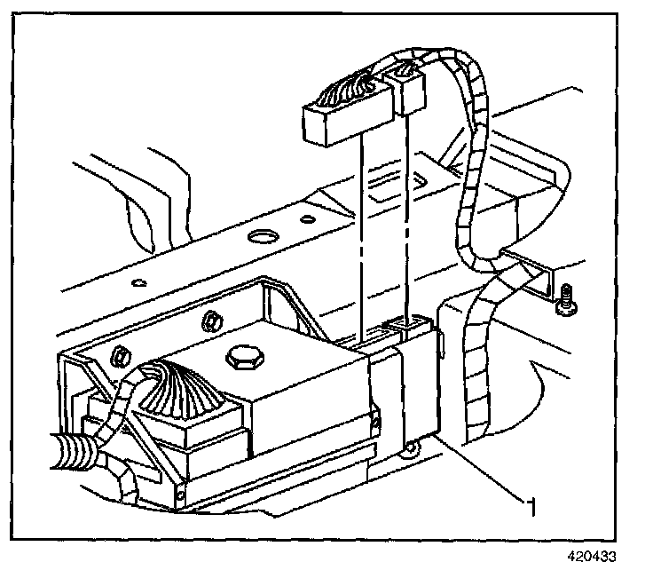 4. Remove the fastener retaining the rear door module (1).
