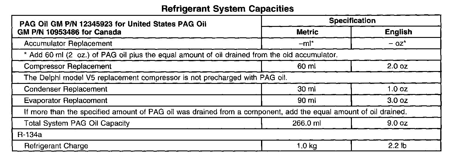 Refrigerant System Capacities:
