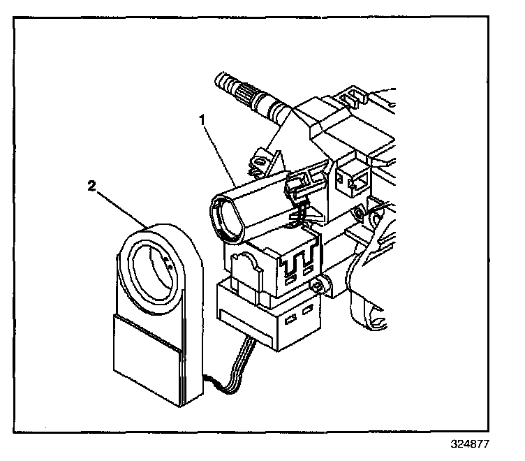 5. Pull the theft deterrent module (2) away from the lock cylinder housing (1).