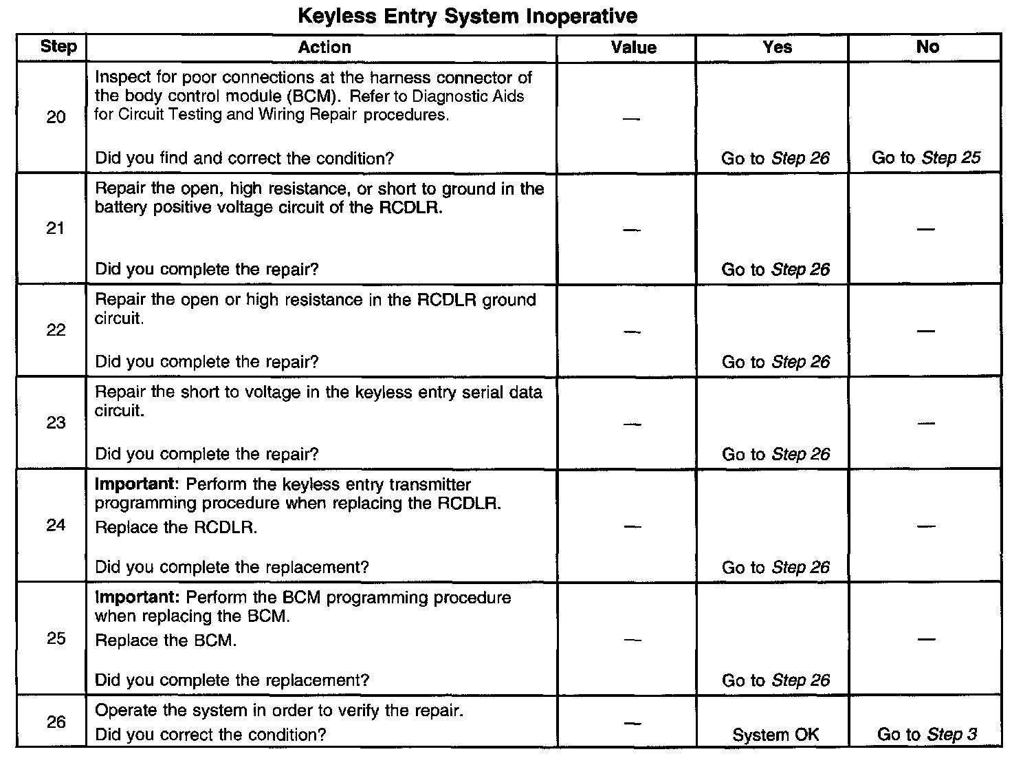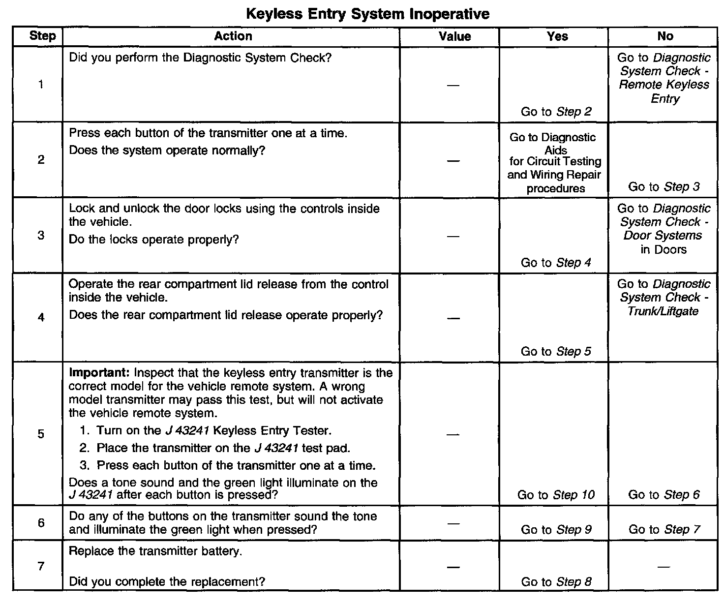 Keyless Entry System Inoperative