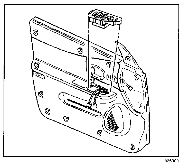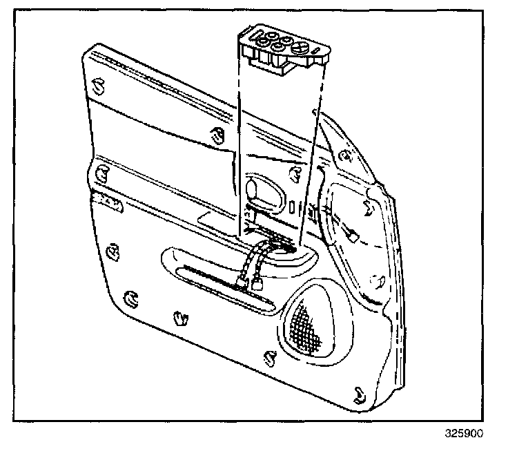 REMOVAL PROCEDURECAUTION: Disconnect the power window switch when working inside the driver door. When operated, the Express Up/Down Feature allows the door window to move very quickly, without stopping, which could cause personal injury.