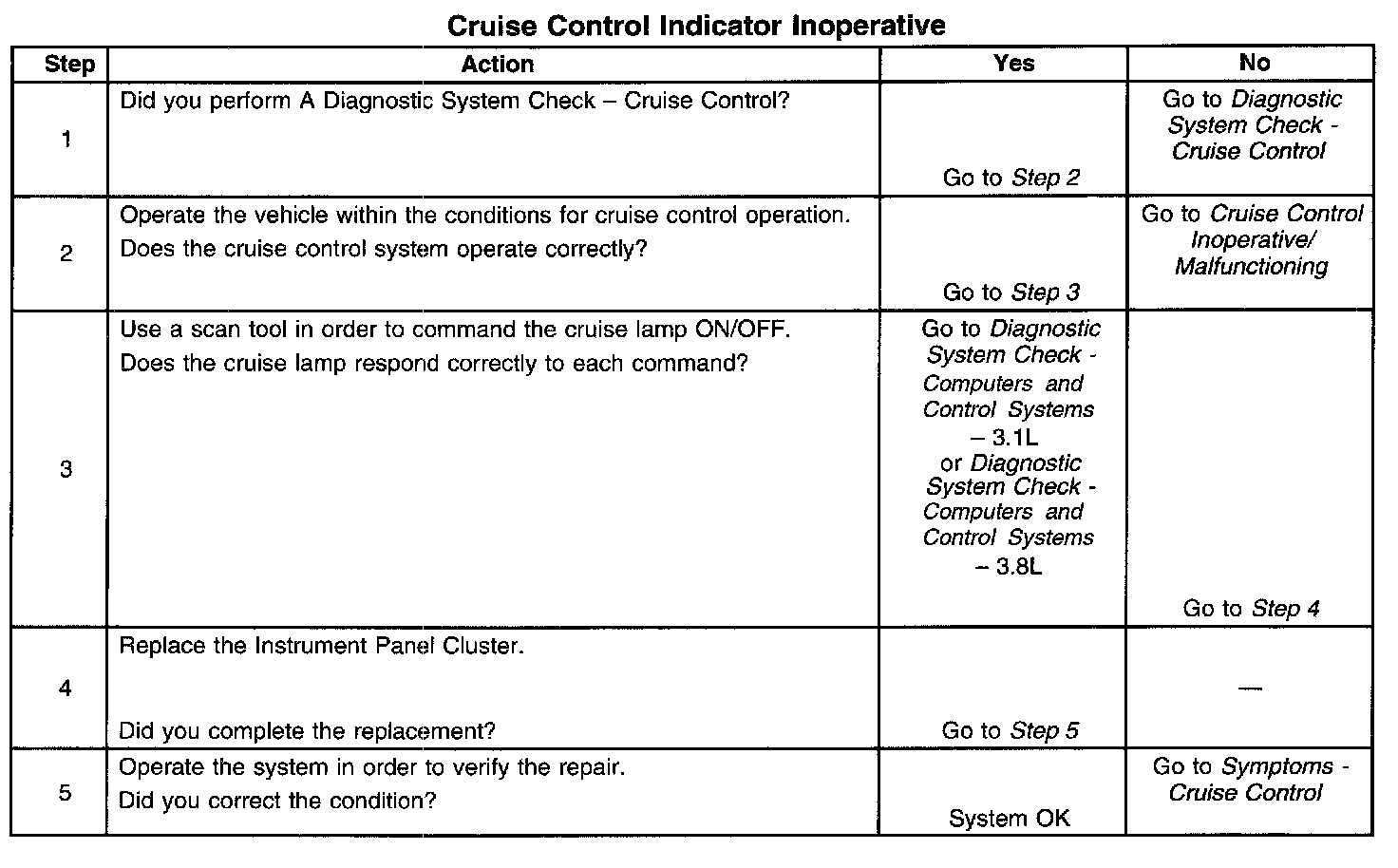 Cruise Control - Indicator Inoperative