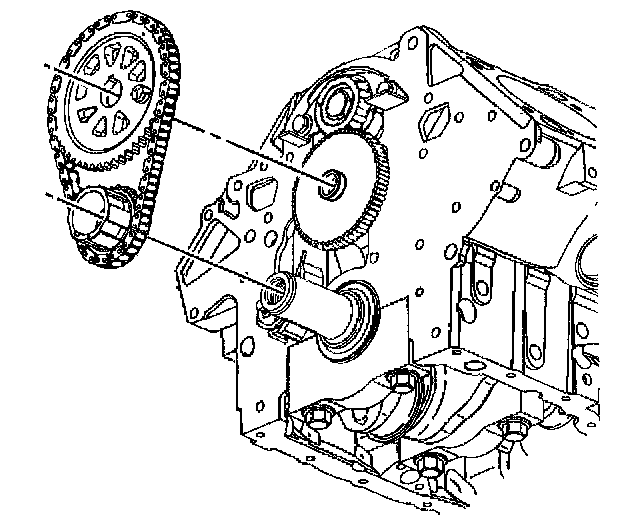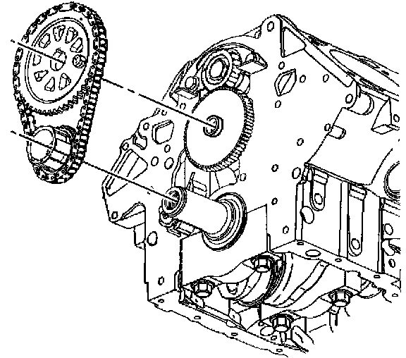 9. Assemble the timing chain on the sprockets with the timing marks as close together as possible.