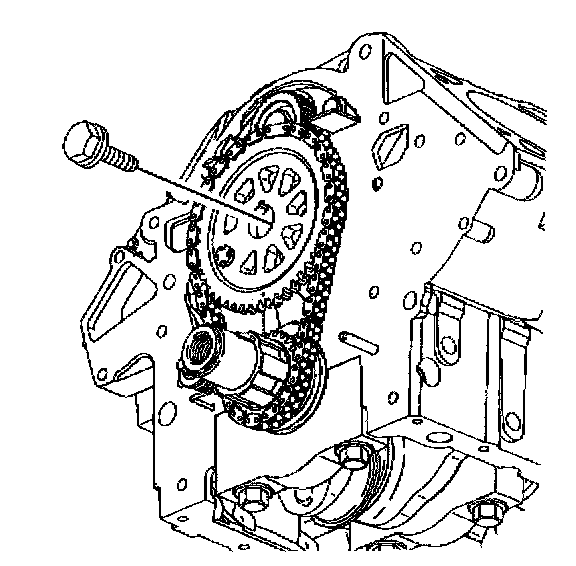 2. Prevent the balance shaft from rotating and install the balance shaft driven gear bolt.