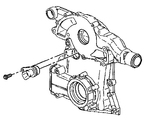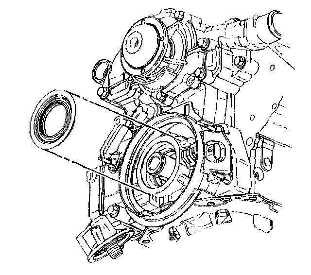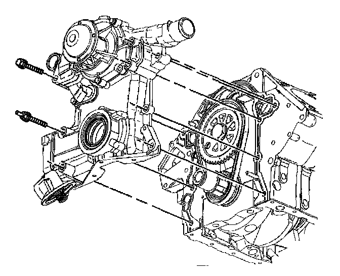 Important: The oil pan can be dropped slightly for engine front cover clearance if all pan bolts are loosened and the oil level sensor is removed.