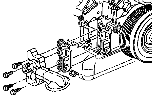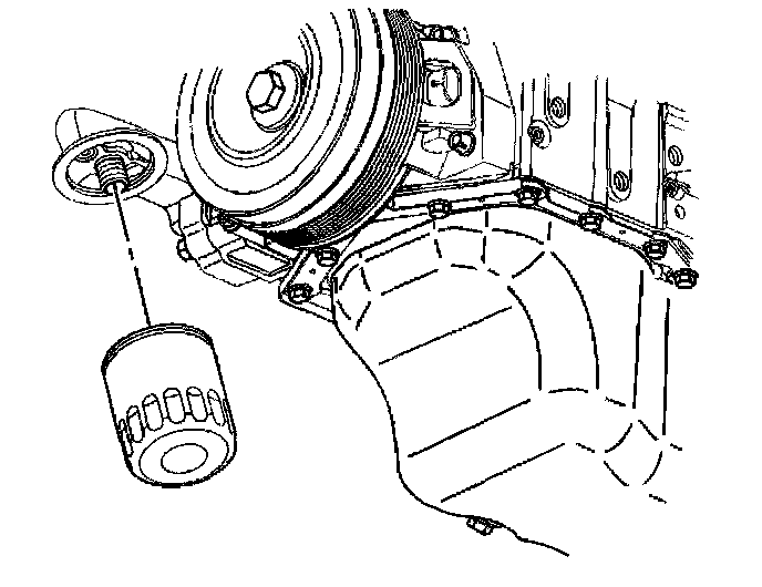 5. If replacing the engine front cover, install the pressure relief valve, the oil filter adapter and the oil filter adapter bolts to the engine front cover.