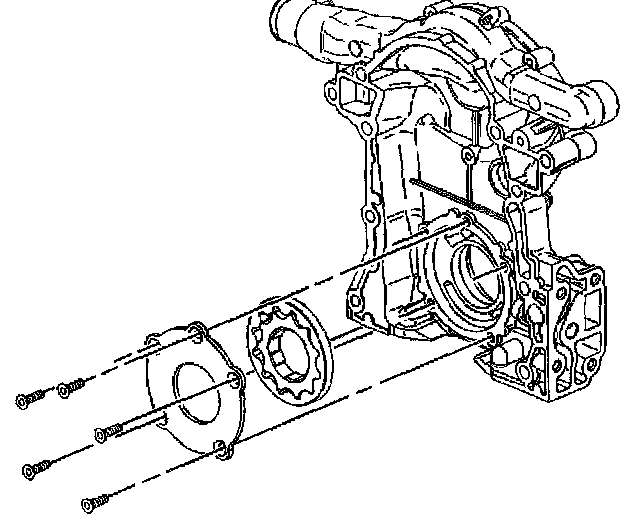 2. If replacing the engine front cover, install the oil pump cover and gear set to the engine front cover.