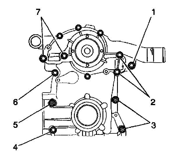 28. If replacing the engine front cover, remove the water pump from the engine front cover.