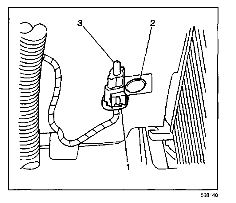1. Disconnect the electrical connector (1) from the ambient air temperature sensor (3) that is located on the right front radiator air baffle.