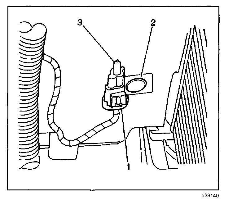 3. Remove the ambient air temperature sensor (3) from the radiator air baffle.